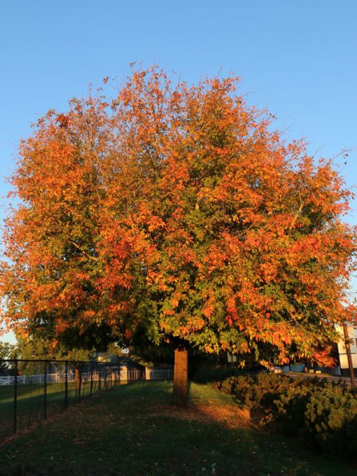 Foliage is a pleasant medium green in summer, and changes to a lovely bright red color in autumn.