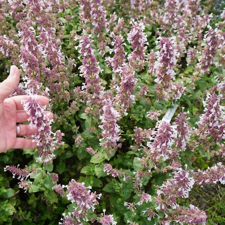 A standout catmint cultivar, combining elegant form, fragrant foliage, and generous, soft pink blooms. This vigorous variety forms mounded, aromatic clumps of gray-green leaves that smell minty when brushed. From late spring onwards, it sends up tall flower spikes loaded with dense plumes of soft pink tubular blossoms, creating a romantic, airy effect in the garden.