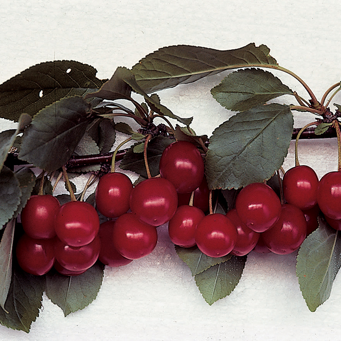 This self-pollinating cherry produces sour fruit 2-3 years after planting.
