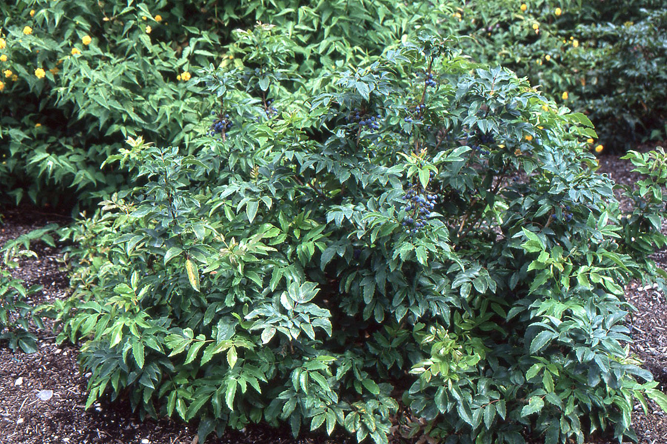 A diminutive, attractive form of Oregon Grape, bred to maintain a more manageable size while retaining the desirable characteristics of its larger relatives. In spring, the shrub bursts into clusters of bright yellow, fragrant flowers that draw pollinators. These are followed by small, bluish-black berries in summer, which birds will often appreciate. The foliage is evergreen in suitable climates, with new leaves emerging in bronze or copper tones, maturing to glossy dark green, and often taking on purplish or bronze hues in winter.