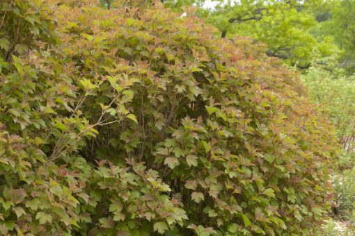 A compact, multi-stemmed, round-shaped deciduous shrub that offers season-long interest. In mid to late spring, it produces showy white lace-cap flower clusters that sit above its foliage. After flowering, it develops bright red berries that persist into late fall and winter, providing visual interest and food for birds. Its foliage emerges with a slight red edged new leaf, shifts to green through the growing season, then transitions to deep red and orange tones in autumn.