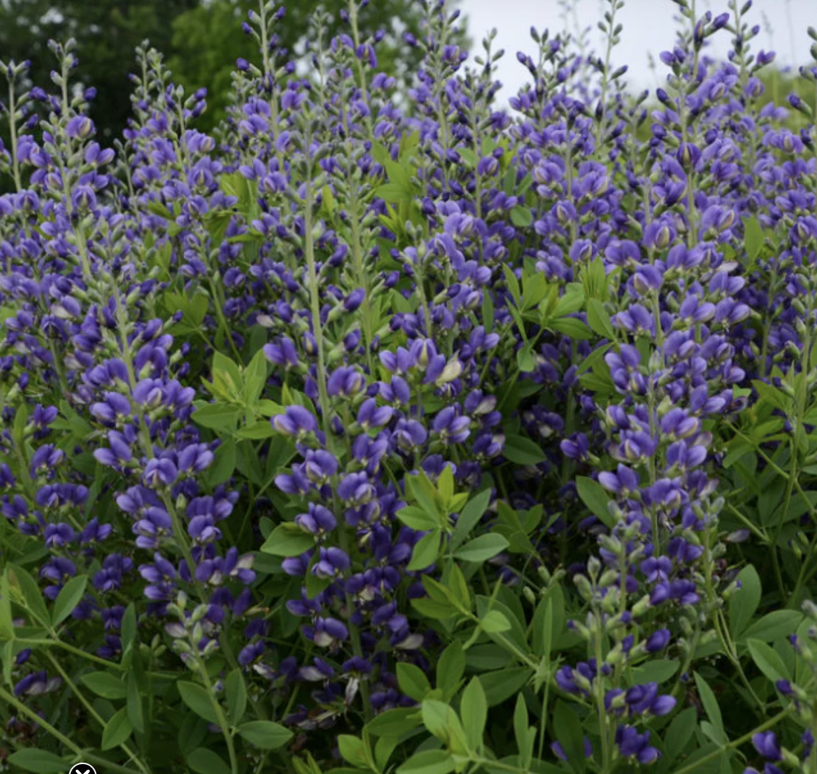 Deep indigo-blue flowers bloom on spires Late Spring. Blue-green foliage looks great all summer. Deer Resistant. Drought tolerant. Salt Tolerant. Attracts pollinators.