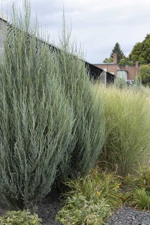 Stately, columnar form makes this likely the narrowest juniper available – so narrow and upright, in fact, it resembles a skyrocket! A durable and versatile evergreen with beautiful bluish green foliage, it works well grouped to form a colorful screen, or singly as a garden accent in a mixture of conifers.