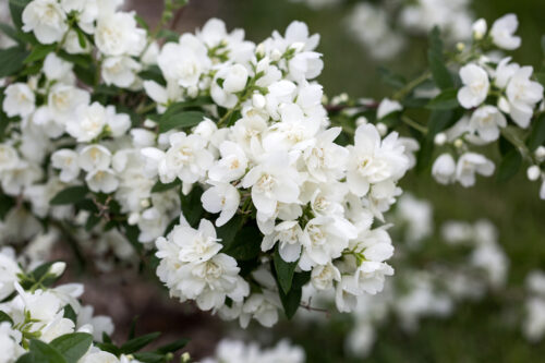 Snow White™ Mockorange is a repeat blooming, versatile shrub that presents pure white, deliciously fragrant flowers.