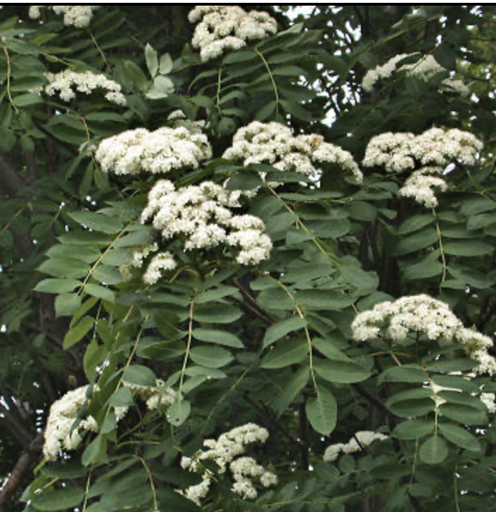 Each odd pinnate leaf (to 10” long) has 11-15 lanceolate bluish-green to gray-green leaflets (each 2-4” long) which have pointed tips, serrate margins and are broadest in the middle.