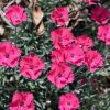 A vibrant, compact perennial that delivers bold, fragrant color in a small footprint. Its low, mounded foliage forms a cushion of frosty blue-green leaves, above which arise single, deep magenta-red blooms with delicately serrated edges. At peak, the plant appears nearly blanketed with flowers, making it a standout in border fronts or as a bright accent in mass plantings.