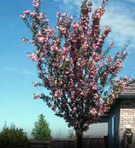 Prunus × cistena, commonly called purple-leaf sand cherry, is an upright deciduous shrub that typically grows 6-10’ tall and 5-8’ wide.