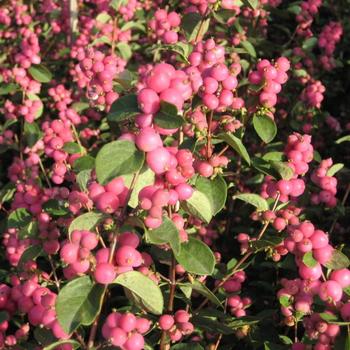 A striking ornamental shrub bred to showcase vibrant color in multiple seasons. In summer it bears clusters of soft pink blooms along its full, leafy branches. As summer progresses, those flowers give way to bright pink berries that cling to the stems-even after the leaves fall- resulting in a dramatic display of hot-pink accents against bare branches in late fall and winter.