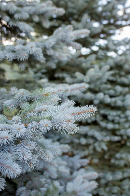 A choice Colorado blue spruce selected for its consistently vivid, silver-blue needles and clean, symmetrical form. It develops a classic spire that reads “evergreen focal point” from any distance. The dense branching and persistent color make it a four-season anchor for entries, property corners, or windbreaks. In mixed plantings, its cool blue tone pairs beautifully with gold or burgundy foliage and pale flowering perennials.