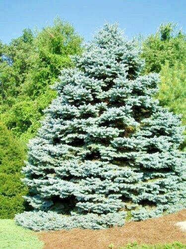 The small size and compact habit with shimmering frosty blue foliage makes this tree a versatile specimen for