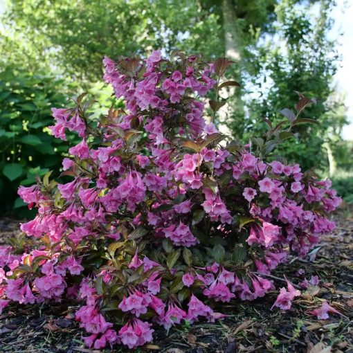 A deciduous shrub known for its vibrant pink blooms, dark burgundy foliage, and impressive reblooming capability. Pollinator-friendly and deer resistant.